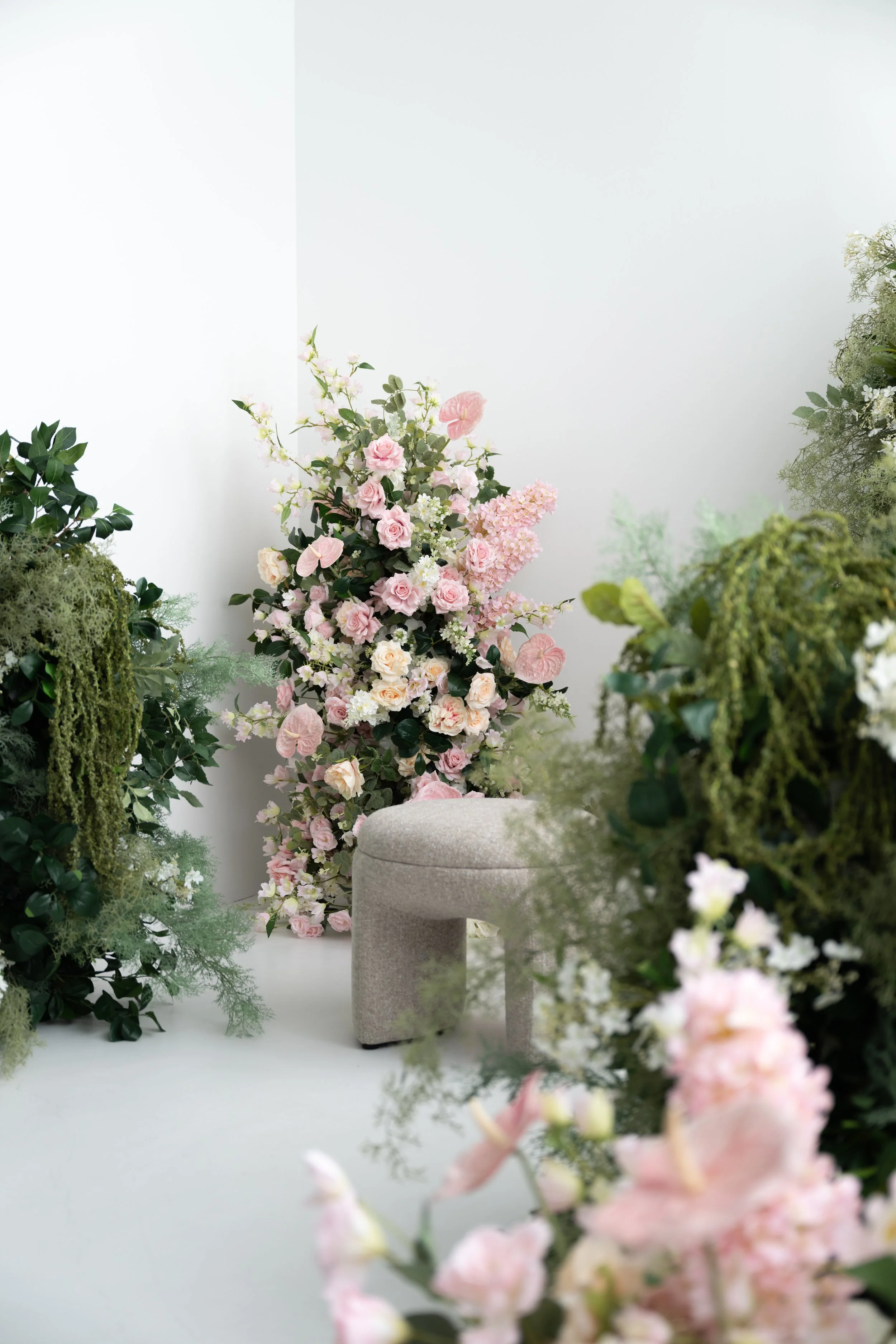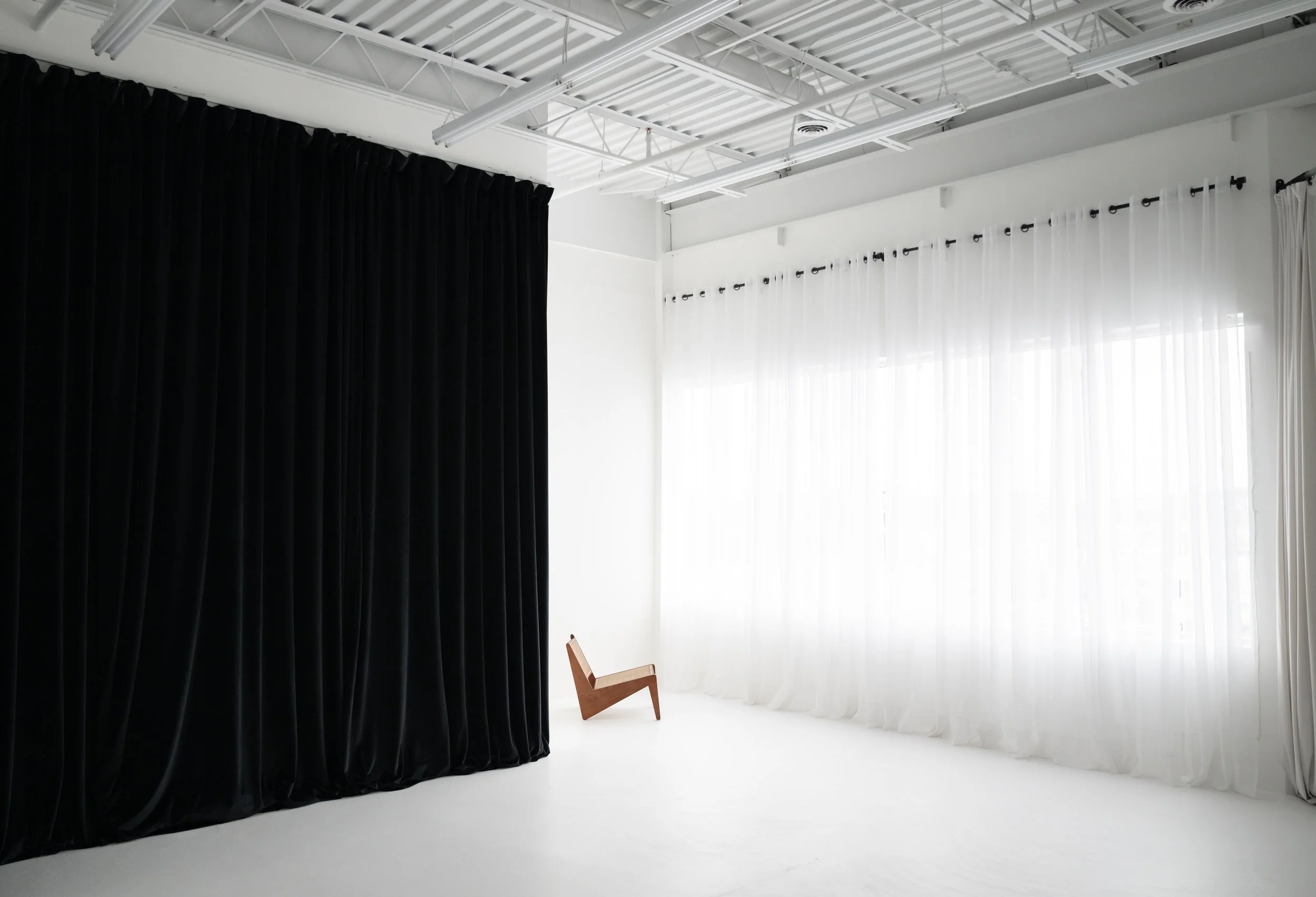 Step into this lush black velvet drape set. Our 20ft black velvet drapes extend along the floor, transforming this installation into a space that challenges you and inspires creativity.